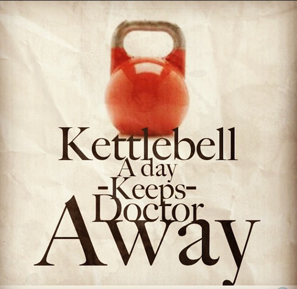 Don’t be a hero and go too big too fast. I started with a 20 lb kettlebell and moved up quickly to a 35 lb.