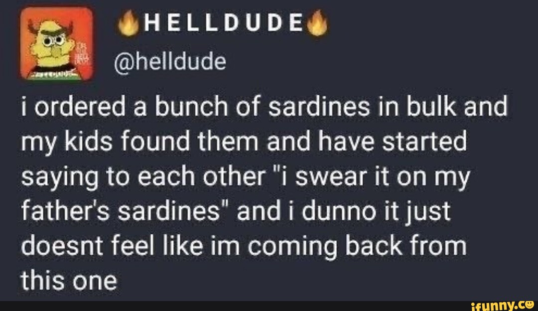 He reported sardine oil oozing from every pore, and even in his urine. (Unverified since no one else witnessed/ smelled this! š) Energy levels were extremely low, and he had a hard time in the last 12 hours. When I asked for a report and mentioned I was feeling great, he texted āYou suck.ā This led me to believe he wasnāt having a good day.