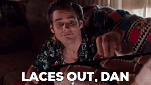 It goes back to that classic movie, Ace Ventura: Pet Detective. It’s a major plot point, based on the idea that a football player should put the laces of the ball on the side facing the goal posts when holding the ball for a kick.